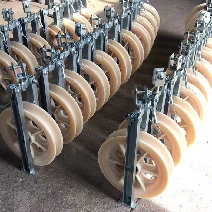 These cable pulleys protect cables and conductors from friction during installation, saving both time and effort in overhead transmission line construction.